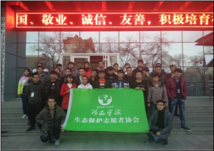 我们是普及环保知识,崇尚科学,保护自然的生态保护志愿者,我们要号召全校员工关注生态,了解自然环境树立人与自然和谐相处的自然观。